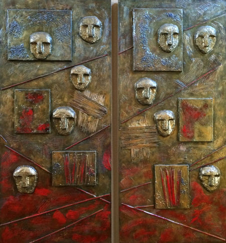 I worked on diptychs, a tridimensional format on wood, representing the Twin Towers and the vertical flag of the United States, all encapsulating the different stages of healing and mourning. Old Glory, four panels representing the flag, is at Ball State University in Muncie, Indiana. I exhibited this series in 2003 at Art Miami and Art New York fairs through the Latinarte Gallery of Miami 2003.